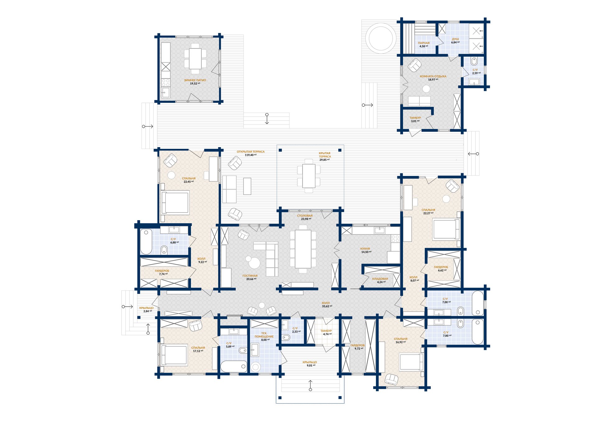 «ТЁПЛЫЙ КОНТУР» — это готовый комплект всех деталей из клеенного бруса и остальных строительных материалов, для сборки дома в “Тёплом контуре” по проекту Корпорации “РУСЬ”.